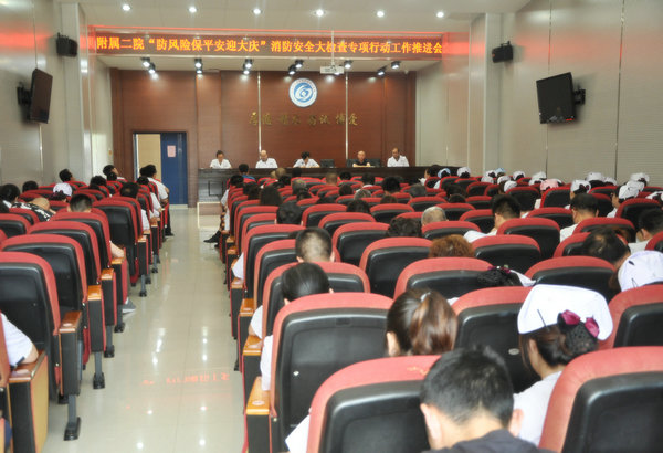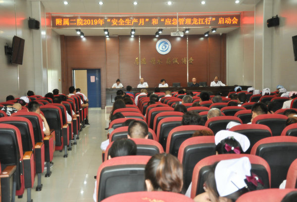 6月13日下午,我院在临床技能中心多功能大厅召开“防风险 保平安 迎大庆”消防安全大检查专项行动工作推进会暨2019年“安全生产月”和“应急管理龙江行”启动会。院长、党委副书记张淑英讲话,副院长赵玉环提出具体要求,保卫科科长王革传达文件精神,全体领导班子及行政科室负责人200余人参加会议。
