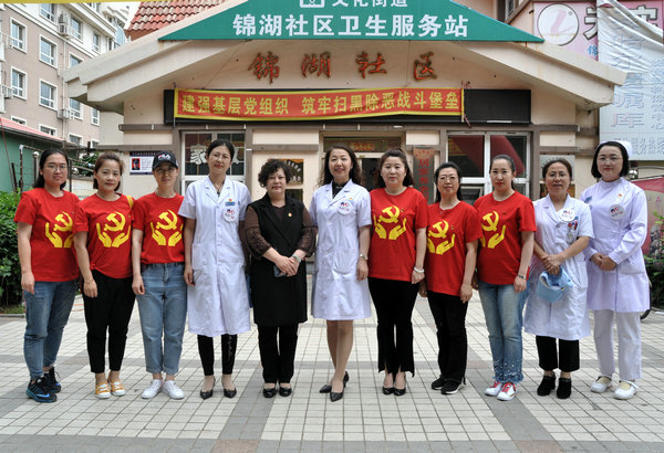 锦湖社区干部职工及居民与我院内三党支部义诊团队合影留念