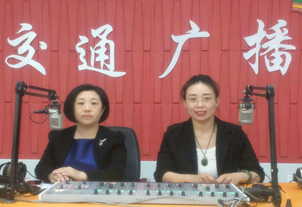 精神卫生中心心理调适区主任梁雪梅(右一)与交通广播电台主持人丁玉讲解抑郁症