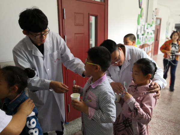 大学生指导小学生正确刷牙方式