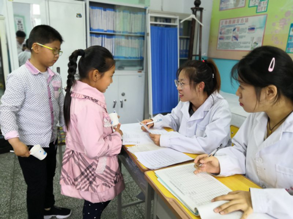 学生志愿者为小学生建立口腔健康档案