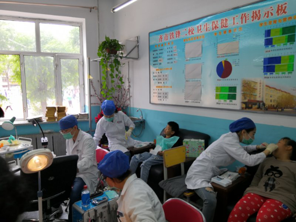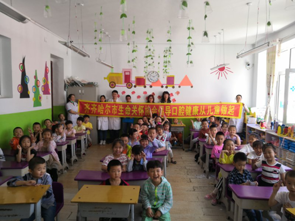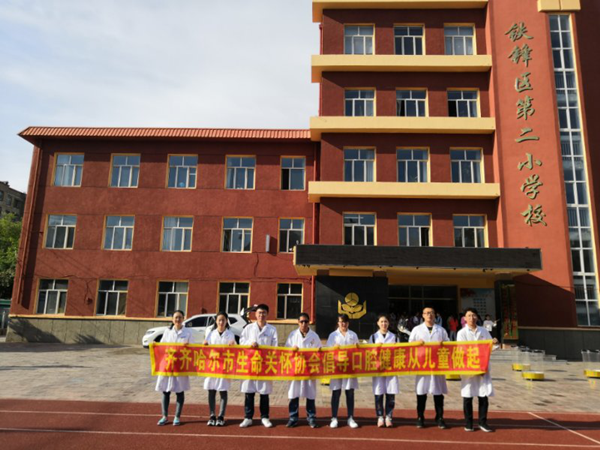 2019年6月4日上午和5日全天,齐齐哈尔市生命关怀协会联合齐齐哈尔医学院口腔医学院师生志愿者团队赴齐齐哈尔市铁锋区第七小学幼儿园和第二小学开展了社会服务活动。此次活动由口腔医学院党总支书记、市生命关怀协会副理事长李晓华同志组织实施,共计20余名师生志愿者为50名幼儿进行了牙齿涂氟、80余名小学生进行了窝沟封闭防治儿童龋病,以及口腔保健宣传教育活动。