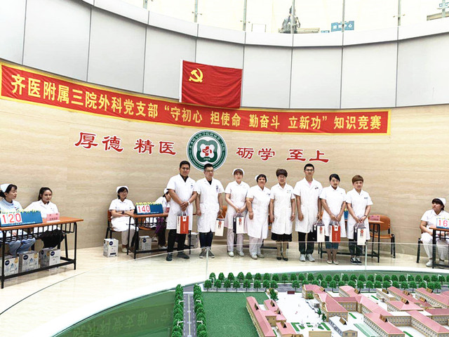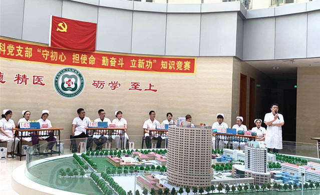 为响应学院“弘扬爱国奋斗精神、建功立业新时代”主题党日活动,进一步加强医院各党支部的自身建设及理论水平提升,同时强化扫黑除恶在党员心中的政治地位,6月21日13:30,外科系统共五个党支部在住院综合楼三楼举办外科党支部“守初心、担使命、勤奋斗、立新功”知识竞赛。我院党委书记李玉雪和党办主任朱莉亲临现场并给予指导。