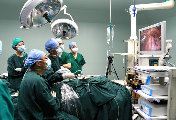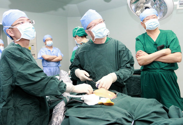 导师在进行腔镜手术现场演示