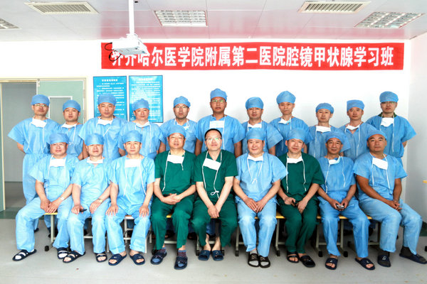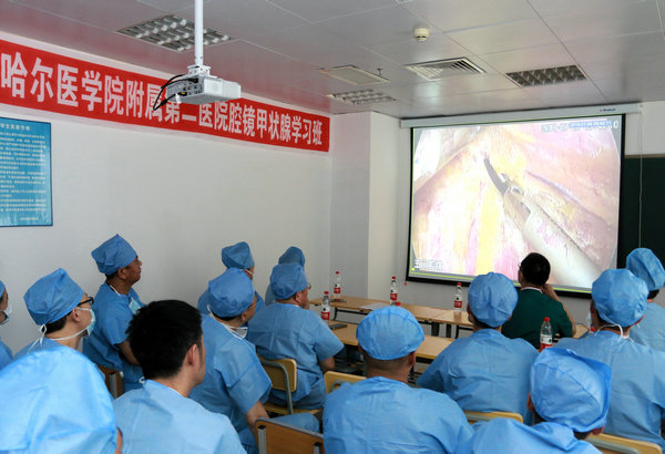 7月6日,在这骄阳似火的夏日里,医院迎来了腹腔镜培训基地成立一周年。值此之际,医院与哈医大四院联手隆重举办了第三期腔镜甲状腺手术培训班。普外科主任张浩民教授致辞,哈医大四院普外五微创血管病房主任陈之显教授讲话并做腔镜手术现场示教与讲解,医院普外科副主任王峰副教授主持开班仪式,哈医大四院陈之显团队与附属二院张浩民团队进行了专题讲座和腔镜下甲状腺癌及胃间质瘤现场手术演示,来自大庆市人民医院、齐医学院附属一、二、三院、齐市第一医院、中医医院、建华厂医院以及嫩江县中医院等各区、县医院30余名普外科主任、副主任参加学习培训。