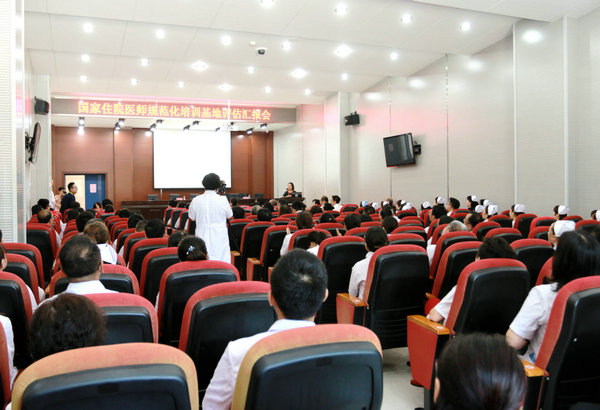 7月18-19日,受国家卫生健康委科教司委托,中国医师协会指派国家住培专家组一行4人,在省规培办主任、医学院成教学院院长罗庆东陪同下莅临我院检查评估指导住培工作。检查组在临床技能中心一楼多功能厅组织召开国家住院医师规范化培训基地评估汇报会和反馈会,检查评估组组长主持会议,医学院副院长张晓杰、省卫健委科教处处长张久明到会,医院院长、党委副书记张淑英作表态发言,副院长鲍红光作住培工作汇报,纪委书记胡晓强、副院长孙庆顺、赵玉环等领导班子、全体行政科室负责人、全院科主任、副主任、秘书等二百余人参加会议。检查评估以听取汇报、查阅资料、实地考察、座谈访谈、观摩教学等方式进行。