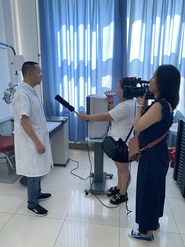 进入暑假,不少孩子把时间花在了上网、玩游戏、看电视及各种培训、书籍、作业上,手机、平板电脑等电子产品不离手,视力下降快。暑假以来,来我院眼科就诊的儿童患者也明显增加。7月22日下午,齐齐哈尔市新闻传媒中心《直播鹤城》栏目和《鹤城晚报》记者来到我院,针对近视发病原因及近视低龄化的防控措施等问题对我院眼科主任邢立臣进行采访。