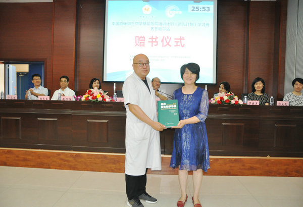 谷丽博士(右一)向医院赠书