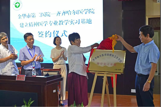 8月12日上午,精神卫生学院王玉花院长与金华市第二医院华深院长为齐齐哈尔医学院实习基地揭牌。金华市第二医院领导班子、中层干部、全体医生、医技辅助科室及职能科室人员出席了此次会议。此次合作旨在满足齐齐哈尔医学院精神卫生学院学生临床阶段的学习和生产实习的需要,做到优势互补、共同发展。