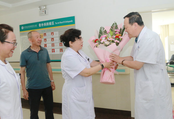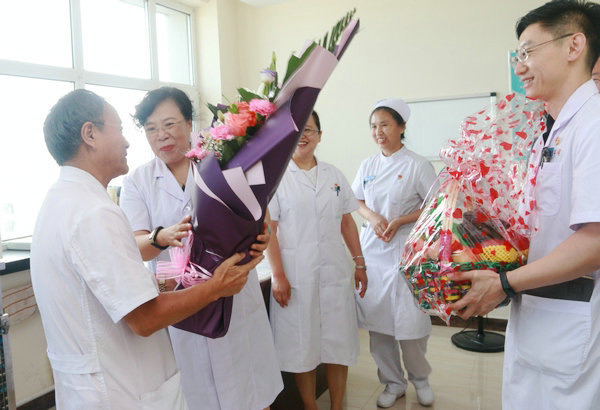 8月15日上午,值此“中国医师节”到来之际,党委书记丁国旭、院长、党委副书记张淑英、纪检委书记胡晓强、副院长赵玉环等领导,走访慰问了医院离退休老专家刘金煜教授、周洁信教授、周淑芳教授、张道玉教授、王廷华教授、崔守先教授、李光华教授,并为他们送上鲜花以及慰问品。