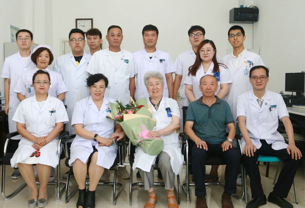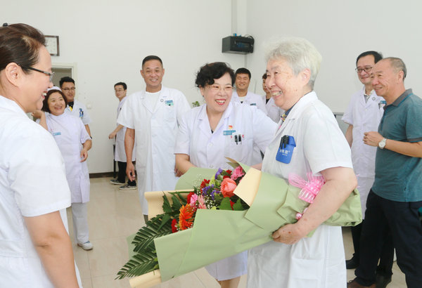 院领导及在岗医护人员与老专家周淑芳教授亲切合影