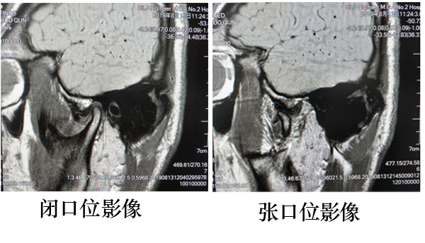 目前MRI作为颞下颌关节功能紊乱综合征(TMJDS)的首选检查已经得到广泛的认可,其优势为:一、无创、无电离辐射;二、软组织分辨率高,任意角度成像,对于关节盘的移位、变形,关节面的退行性变,滑膜病变、关节积液、关节周围软组织的病变均能很好的显示。三、通过闭口位及张口位扫描的图像对比,明确移位关节盘能否自行复位。