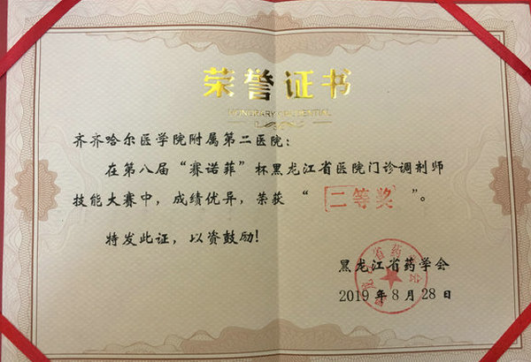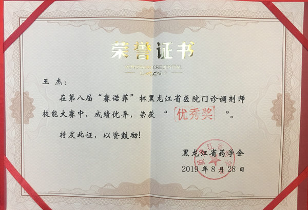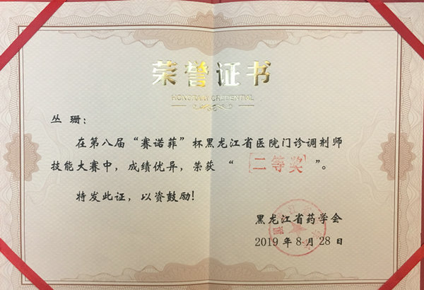 8月28日,第八届“赛诺菲”杯黑龙江省医院门诊调剂师技能大赛在哈尔滨举办,药剂科丛珊、王杰两位药师代表医院参加了此次比赛,并获得了团体二等奖的好成绩,为医院赢得了荣誉。两位药师分别荣获二等奖和优秀奖,丛珊将代表黑龙江省药学会参加9月20日在济南举办的16省市北方医院药学高峰论坛——“赛诺菲”杯医院药师技能大赛。