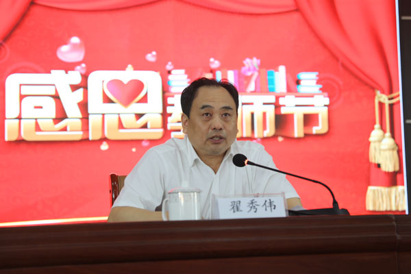 医院院长翟秀伟作总结发言,他提出医院进入新的改革发展期,希望广大教职员工不忘初心,砥砺前行,他提出四点希望:一是服务健康,做医学教育的传承者。坚持抓管理,提内涵,强特色,重实效的教育教学工作目标。致力于“以学生为中心”,以质量为核心,以临床胜任力为导向,多方面培养应用型医学人才。二是改革创新,做医学教育的开拓者。新时期对教育教学工作提出了新的目标和要求。医学教育担负着为卫生健康行业培养输送合格医学人才的重要任务,各位教师们责任重大,希望教师们崇尚荣誉、迎接挑战,锐意进取、改革创新,把创新教育教学方法,提升教学质量作为工作重点,积极培养新一代医学人才。三是培育并重,做医学教育的守护者。培养全面发展的学生,做学生学习生活的“贴心人”,以人文关怀贯穿整个教育教学环节,增强学生归属感。教师不仅要做传授书本知识的教书匠,更要成为塑造学生品格、品行、品味的“大先生”。四是德技双馨,做医学教育的模范者。时刻牢记“德为人先,学为人师,行为世范”,用高尚人格去影响学生,用丰富的知识去教育学生,用宽广的胸怀去包容学生,用致远的境界去塑造学生。加强师德修养,提高认识,争做有理想信念、有道德情操、有扎实知识、有仁爱之心的好老师,使自己成为政治过硬、品德优良、职业道德高尚的教育工作者。