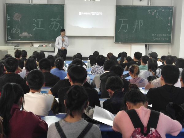 会上,韩宇经理以大药为背景向同学们介绍了药品流通领域未来的发展前景和从业环境,并与同学们就医药流通领域的相关问题进行互动。接下来,韩宇经理就江苏万邦生化医药股份有限公司此次招聘职位、薪资情况、发展空间等基本信息做了详尽介绍。