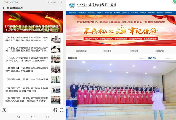 医院网站、微信公众号发布主题教育活动信息及全院干部职工参加建华区庆新中国70华诞大合唱活动
