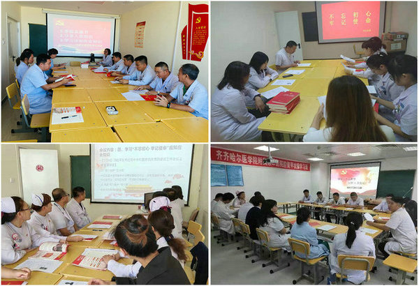 医院党委第一时间组织召开“不忘初心、牢记使命”主题教育专题工作会议及推进会,开设了“不忘初心、牢记使命”主题教育读书班,认真开展学习研讨活动。组织各党支部深入学习了学院“不忘初心、牢记使命”主题教育动员部署会议精神,全体支部分别组织党员开展了“重温入党志愿、永葆入党初心”专题活动,重温入党志愿,定时限、定任务、建立集中学习、个人自学、交流研讨、主题党日等学习教育机制。