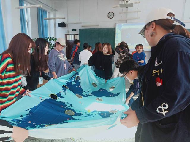 “嘿,新同学,我想记得你”,每个人在纸条上写出自己的三个特征,然后纸条打乱分发,每个人来猜自己手中的纸条上描述的人是谁,根据特征找出与众不同的ta;“WE ARE 伐木累”,4组同学通过图卡路线,让小球在有洞的地图上从起始点到达终点,测定哪组的用时最短,在游戏中大家互相认识和了解并体会了相互合作的重要性 。