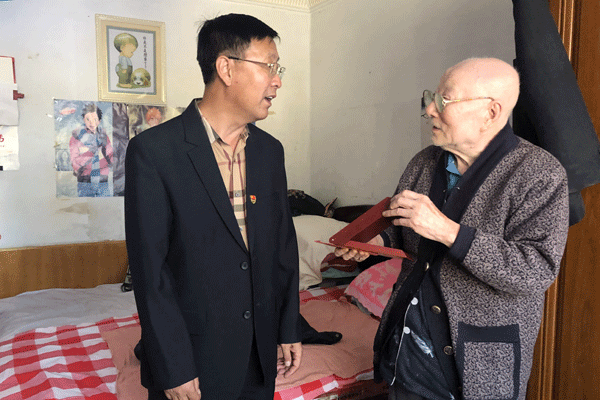 慰问过程中,工会主席何宪坤握着老干部的手对他们嘘寒问暖,仔细询问他们的生活情况和身体状况,叮嘱老干部一定要保重身体,安享晚年。何宪坤主席代表学院党委向两位离休老干部表示亲切的慰问和崇高的敬意,并为他们颁发了“庆祝中华人民共和国成立70周年”纪念章。两位老同志激动地说:“纪念章是对我们工作的肯定,感谢党和政府给我们这么高的荣誉,感谢学院一直以来的关怀和照顾,祝愿学院发展越来越好。”何宪坤主席指出,老同志是党和国家的宝贵财富,学院不会忘记他们为学院发展建设作出的突出贡献,希望老同志一如既往地关心、支持学院发展,继续发挥余热。