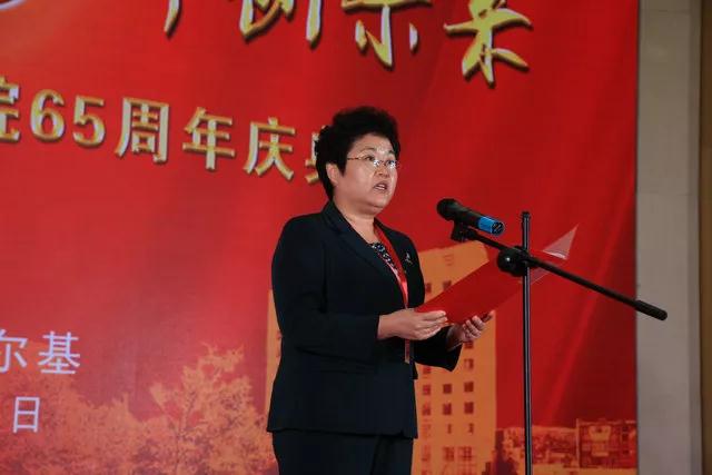 齐齐哈尔医学院院长、博士生导师赵炜明教授代表学院发表了热情洋溢的讲话。赵炜明院长肯定了医院在班子建设、科室梯队建设、师资队伍建设、重点专科建设、乡村医生培训、医联体建设等方面取得的骄人的成绩。赵院长说附属一院是学院的第一临床医院,艰苦创业,励精图治,奋发图强,大胆创新,开拓进取,曾助推学院创建全国首个妇产科学本科专业以及多个学科的建立,形成了鲜明的办学特色和专业优势,培养了一大批具有良好思想道德品质、较高医学理论素养和实践能力的专业人才。赵院长殷切希望广大教职工以65周年为新的起点,继续传承六十五年办医办学经验,志存高远、勇于创新、知行合一、脚踏实地的医疗惠民、教学立德、服务社会。也希望广大校友和社会各界人士继续关心支持齐医附属一院的发展,使其更加枝繁叶茂,硕果累累。祝愿齐医附属一院百尺竿头,更进一步,创造更加美好的明天!
