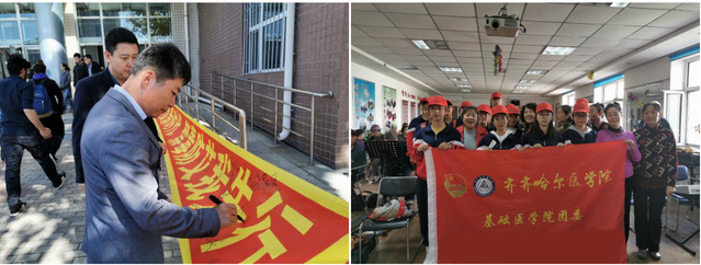 9月18日,在春华城一楼和华溪小区开展了“青春不负新时代,禁毒防艾我先行”为主题的禁毒防艾宣讲及百人签名活动,活动中宣传了毒品对一个人、一个家庭乃至国家的危害等相关知识,让同学和居民对“禁毒防艾”有了更深的了解。21日、30日,基础医学院志愿者开展了“忆漫漫志愿路,创闪闪满天星”主题导诊活动。齐医附属三院门诊部对本次活动给予了大力支持,在为志愿者们简单培训后,志愿者被分配到不同岗位,帮助患者简化就诊流程,帮助护士维持就诊秩序,活动中,多名志愿者被护士长评为最美志愿者。25日基础医学院在秋实城三楼开展了“金秋九月七十荣光,甘于奉献大爱无疆”主题献血活动。动员500余人参与无偿献血活动,成功献血人数达466人,血量达114250毫升,齐齐哈尔市中心血站站长表示本次献血活动有效的缓解了我市血源紧张情况,特此授予共青团齐齐哈尔医学院基础医学院委员无偿献血优秀组织奖。