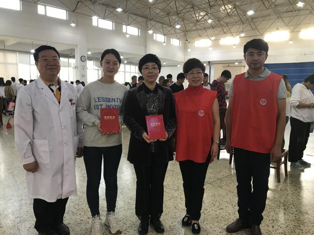 基础医学院辅导办主任、团委书记王坤与齐齐哈尔市中心血站站长等人合影