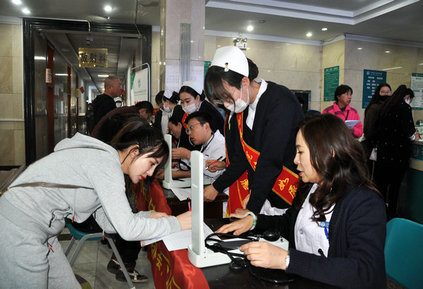 义诊活动中,王艳霞主任、李彩杰副主任等为前来义诊的市民进行了血压检测,讲解了高血压防治知识,发放了高血压病宣传单,临床药师王冬梅为患有高血压的人员进行了用药指导。