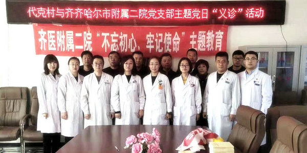 来自三个党支部的临床骨干医生,为当地百姓进行义诊服务及免费做心电检查,各位医生详细询问村民的病症、提出了治疗意见。义诊结束,为贫困村民捐赠了棉服、衣裤、鞋以及图书等。我院党员爱心义诊、捐赠活动收到了当地村民的热烈欢迎和充分好评。全体党员还与泰来县残联、代克村党支部共同重温了入党誓词。