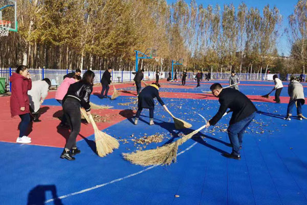 在各项运动中,篮球运动向来受到同学们的青睐,然而篮球场地上的枯树叶却给师生运动健身带来了困扰。活动中,机关党委第八党支部党员在做好清扫区域分划和打扫安排分工后,迅速认真开展清扫,经过近一个小时的劳动,篮球场重新恢复了干净整洁。