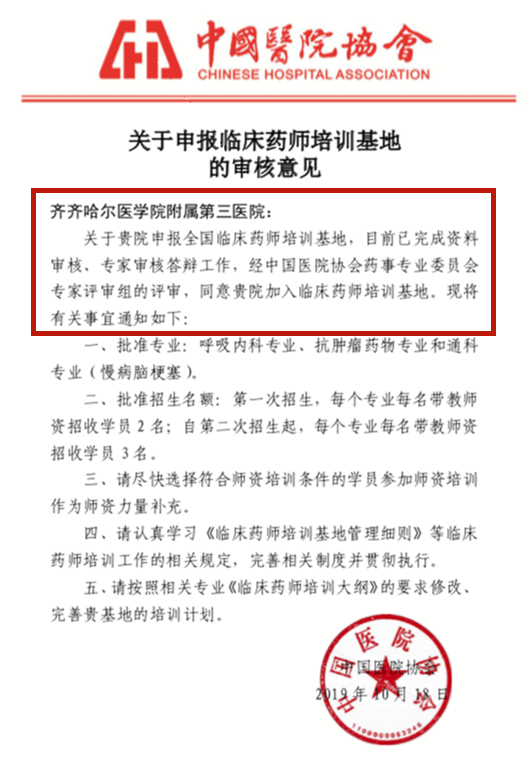 金秋十月,喜讯传来。10月18日中国医院协会药事管理委员会正式批准我院成为国家临床药师培训基地。