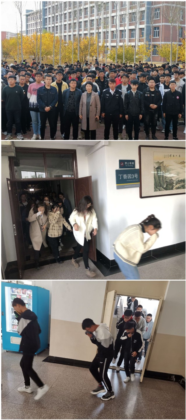 报告会后,我院组织2019级新生在梅园公寓楼和丁香园公寓楼开展了消防安全演练,管主任对演练进行了全程指导。演练历时2分多钟,整个过程紧张有序,实用性强,收到了预期效果。