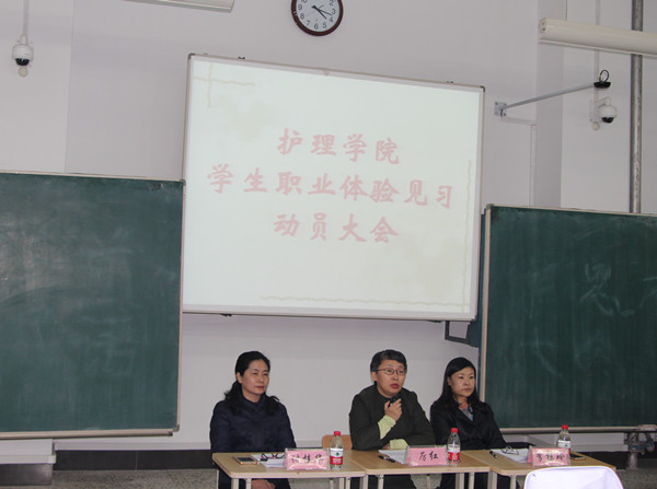 10月23日下午,护理学院在主楼北区116教室召开了2019级学生职业体验见习动员大会。护理学院党总支书记厉红、党总支副书记付桂华、副院长李桂玲参加了会议,会议由副院长李桂玲主持。