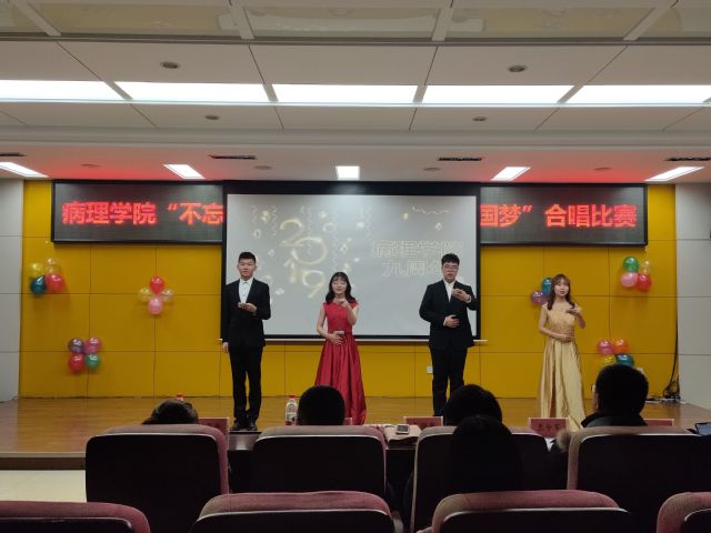 为庆祝中华人民共和国成立70周年,全面深入开展“不忘初心,牢记使命”主题教育,在全院营造积极向上、团结奋进的良好氛围,培养学生爱国、爱校、爱家的情怀,11月22日晚,病理学院在科技楼五楼报告厅举办了“不忘初心,牢记使命,共筑中国梦”合唱比赛暨病理学院成立九周年文艺晚会。党总支书记李迎新、齐齐哈尔医学院学生工作部副部长孟令军、党总支副书记姜鹏、辅导办全体老师及病理学院在校生参加了此次活动。