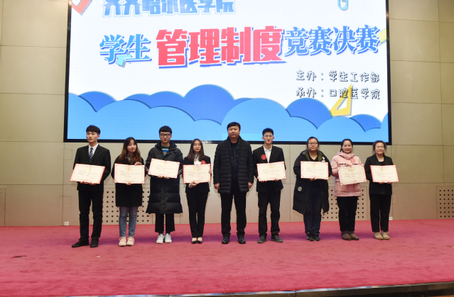本次学生管理制度竞赛以“学制度、守规章、树文明、扬新风”为主题,结合《齐齐哈尔医学院2019年学生管理制度手册》内容,围绕校情校史、学生日常教育与管理、学生行为管理、学生校园生活等方面进行出题。从11月23日起,各二级学院经过易班线上答题的初赛选拔,分别派出3名同学参加了决赛的比拼。