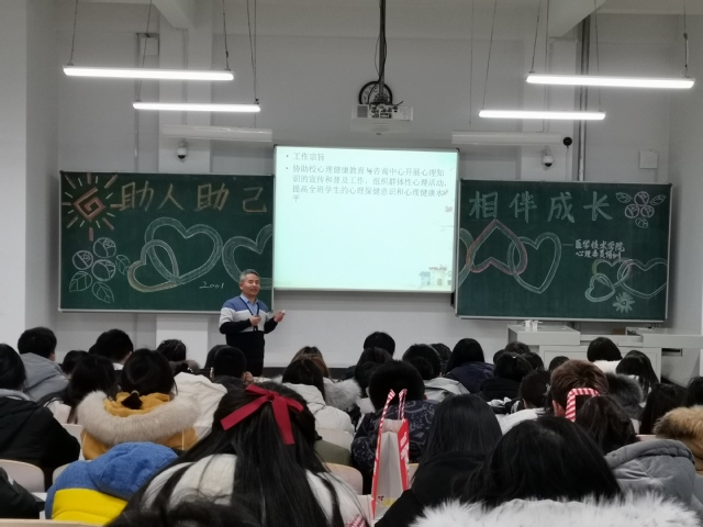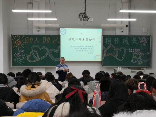 为进一步增强学生班级心理委员的工作职责,提升工作能力,打造学生心理健康工作队伍,完善四级网络体系,12月6日我院在北区105阶梯教室举办了“助人助己,健康成长”心理委员主题培训。班级心理委员和部分寝室长参加了此次培训,本次培训由大学生心理咨询中心鹿凤山主任主讲。