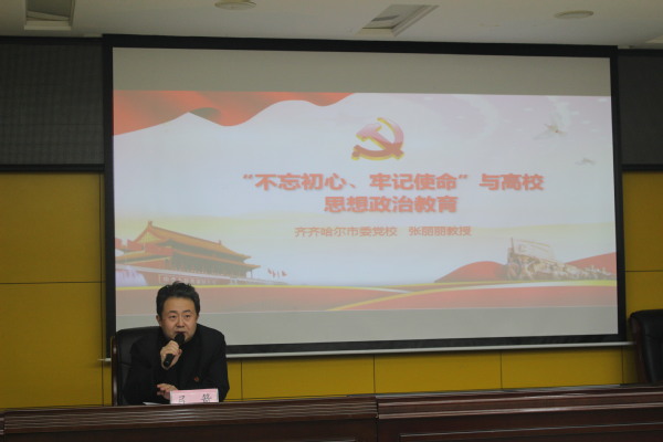 为进一步贯彻学习领会第二批“不忘初心、牢记使命”主题教育理论精神,深入推进“课程思政”育人功能,12月11日,特邀齐齐哈尔市委党校张丽丽教授做题为《“不忘初心、牢记使命”与高校思想政治教育》的专题讲座。学院党委领导班子成员、全体教师、学生党员和部分学生干部聆听了此次讲座。讲座由药学院党委书记弓箭主持。