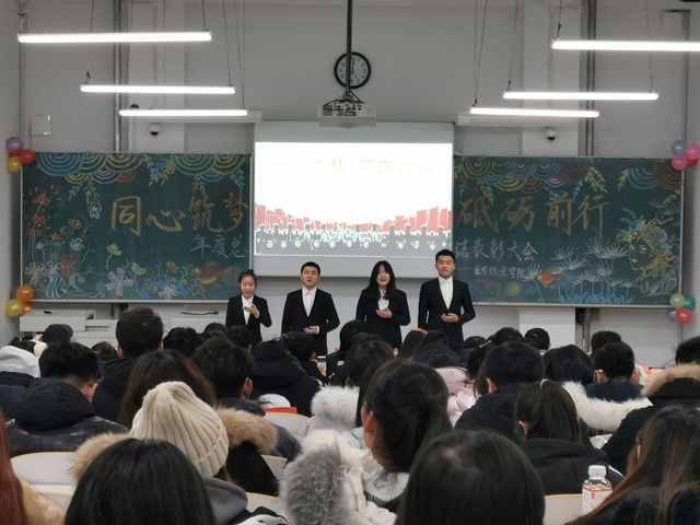 本次会议分为三个议程,首先由各部门负责人总结汇报工作,其次对42名优秀团支部书记、优秀志愿者、优秀社团干部进行表彰,最后由团委逄丽红书记作总结发言,她指出,本学年工作成绩的取得是全体团干部共同努力、全力配合的结果,但是在看到成绩的同时,共青团工作仍存在一些不足,如果对这些不足无视的话,必然对下一年工作开展带来不良影响;她要求全体团干部、尤其是受到表彰的团干部要继续发挥带头作用,提升能力、互相合作、推进工作,使共青团成为团结教育引导广大青年学生的大熔炉。