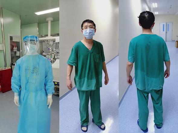 午餐时间,刚刚打开盒饭,我的名字便在走廊响起:杨磊医生,有你的电话。原来是ICU病房里中心静脉置管受阻,急需支援。有句话叫“军令如山倒”,对于我们,病情就是军令,看着眼前没吃一口的饭菜,没有任何犹豫,立即开始穿上装备,准备进去病区。我心里十分清楚,为了节约物资,一般进去一次要连续工作5到7个小时才能从隔离区出来,而此时早餐的能量,已经消耗了4个多小时,这意味着还要再坚持5个小时没有能量摄入。忙于抢救重患而没时间吃饭对于我们重症人来讲,是常有的事,但是穿着厚厚的防护服连续工作几个小时,不吃不喝,还会大量出汗,也确是不小的挑战。进去隔离区,只几分钟,就开始感觉憋气,我慢慢的调整自己的呼吸,让自己尽量适应那种憋闷感,还有上了雾气看不清东西的眼镜。查看患者,分析各项指标异常的原因,调整呼吸机参数,中心静脉置管,很快进入了工作状态,反倒那种不适感减轻了一些,可能我们本就是属于这个没有硝烟战场的战士吧,投入战斗可以驱赶一切。随着时间一分一秒的过去,做完最后一个中心静脉置管,一个阶段的任务基本完成,脱下防护服走出病区,刷手服前胸后背已全部湿透,立马感到一阵“透心凉”。