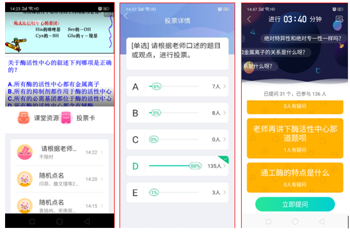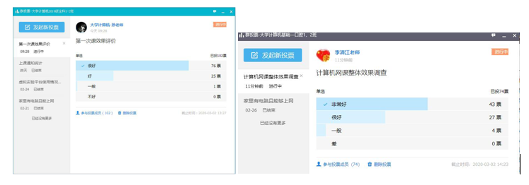 经过前期的精心准备,教师们根据课程特点、网络环境、教学条件等因素选择了不同教学方式、教学手段达成教学目的。如: