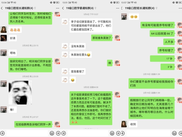 经历了近50天的云办公,这期间的苦与乐真是跟过山车一样,忽高忽低,超级刺激。比如,今天下午孩子们在上系解课前QQ系统崩盘了。起初在群内发签到的时候我还在好奇为何今日的群接龙我看不到,但是看到孩子们井然有序的签到我也是觉得是可能是自己操作出了问题。还询问了学委和签到的同学,想着是哪个步骤出了问题,学委突然告知我任课老师发到QQ群的腾讯会议号孩子们看不到,我心一惊,完了,定是QQ系统出了问题,群消息看不见,孩子们上课怎么办?来不及多想,安排班长在微信群里发通知,学委负责联系每一位同学。我也在各个软件尝试发布各种公告……最终在大家的共同努力下,所有的同学都进入到腾讯会议,老师也开始了今日的课程。看到学生们的头像活跃在腾讯会议上,我悬着的那颗心也终于放下……经过一段时间与同学们的“磨合”,同学们现在能够主动网上打卡报平安,还会告诉我自己平安健康,那些“小可爱们”有时也会跟我说声,老师,辛苦了;老师注意身体。看着群里接龙的数字每天都是满员,不用再长长舒口气的感觉棒极了。最值得欣慰的是,昨天的思政大课之后同学们在易班平台里的留言,面对疫情,他们说出了爱国的话语,主动的担当,在我们平时看起来“酸酸的”话语,此时让我感到的是无比的满足。感谢这场疫情给我们一场不用准备的“情景剧”。在这场战“疫”中学生看到了什么是中国速度,什么是中国精神,什么是中国人的信仰以及中国特色社会主义治理体系是怎么运行的。