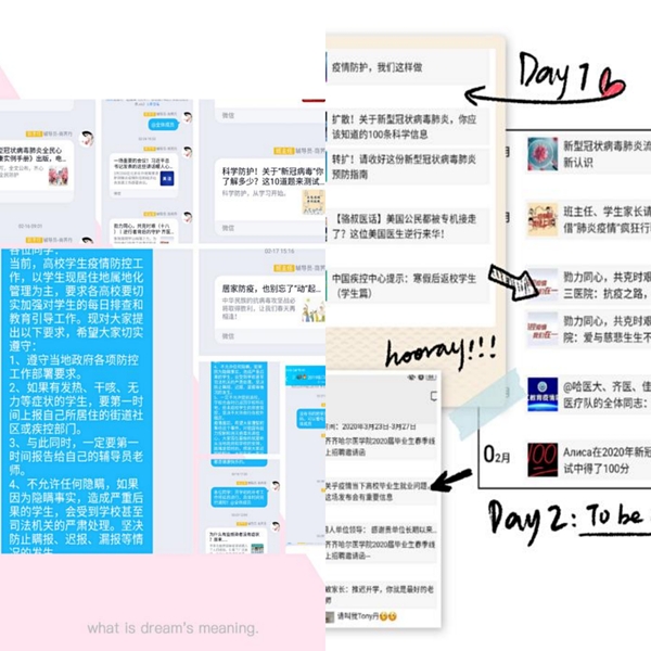 如今中国的抗疫之举得到了世卫组织及其他国家的高度赞扬,伊朗也完全照搬了中国抗击疫情的模式。全国三千多万的高校学生至今不能如期开学,对于教学来说已经全面开启了“停课不停学”的网课学习模式。或许大家都羡慕我们学校师生每年有两个超长假期,可是当疫情来临,作为辅导员的我们第一时间就开启了云办公模式。24小时待命,机不离手,再也没有了睡到自然醒。面对疫情,自己已经不记得打了多少次电话、整理多少条微信及QQ信息、报送多少条数据、回复了多少学生问题。对在身处异地的学生每日问候,再三叮嘱学生一定要严格按照学校和当地政府的要求做好疫情防护工作。每天早上不是在群内发布学生网课的接龙签到,就是去统计身处异地学生的体温,之后要去督促学生进行每日的健康信息填报。因为在家学生习惯了晚起和手机静音,从最初统计二三十个晚报信息的学生要打两个小时电话,到现在同学们已经基本恢复到了开学的状态。督查大家网课学习,以往一周去教室听课1-2次,现在每天都要把学生们的网课课堂进去一遍,一会儿看看上课软件是否有卡顿或者系统崩溃的情况,一会儿查查那帮“小可爱们”是否都在乖乖的听课。当别人在家已经闲的“长毛”时候,我却周游在学生和家庭中间忙的应接不暇。我先生因为工作性质的原因在疫情期间仍需外出工作。下班回来后在社区当志愿者继续为我们保驾护航。家中还有一个不满周岁的孩子需要照顾。每次工作中总是要穿插喂奶、陪玩、做辅食、哄睡觉等这样的环节才算圆满。一日三餐除了速食快餐,就是“吸收日月精华”。为了提高工作效率、保证工作质量,每每都是趁孩子睡觉的时,开始争分夺秒的“疯狂”工作。工作到十一二点也属正常情况。不过这并不能阻挡我们贡献自己的力量。相比工作在医院和一线的同志们,我们这点辛苦又算得上什么呢?苟利国家生死以,岂因祸福避趋之。鲁迅先生在《热风•随感录》里说,“有一分热,发一分光,就令萤火一般,也可以在黑暗里发一点光,不必等候炬火。此后如竟没有炬火,我便是唯一的光。” “一方有难,八方支援”,这是中华儿女一代又一代的传承,是我们刻在骨子、流淌在血液里的家国情怀。是的,其实一直有一粒光的种子在我们的心里,在这场抗击新冠肺炎的黑暗时刻,我们都在努力地守护它。