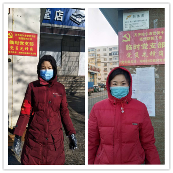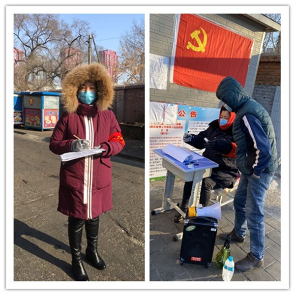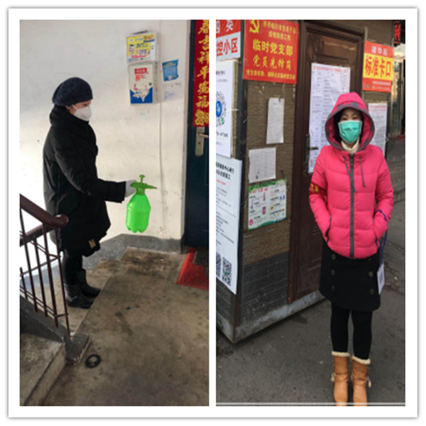 刘红敏副教授(左一)、张英艳副教授(右一)参加社区志愿服务