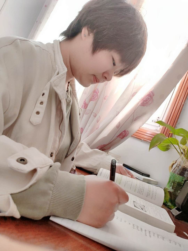 王莹莹同学在家自我隔离,切身做到停课不停学,遵守规定不随意出门