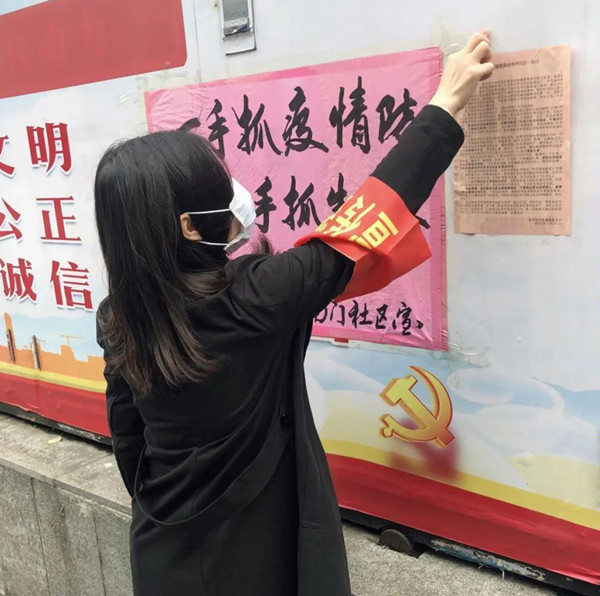 程迪同学在小区帮助开展疫情防控知识宣传工作