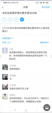 课前,在群内和学习通平台给学生发布教学要求、考核要求和必要的学习资料,平台显示98.9%的同学对授课内容进行了预习。 课中,设置了提问、测试、答疑、讨论等在线互动环节,学生积极参与教学,通过QQ群或腾讯会议积极参与测试和讨论,测试正确率近100%;通过新冠肺炎尸体解剖病理变化融入课程思政,宣传了中华民族的勇敢与担当,传播了正能量;教学内容完整,准确的把握了重点和难点并进行了归纳总结,有效的支持了课程目标;在线授课时精神饱满,讲解细致耐心,讲授准确,表达流畅、生动,语速适中,教学效果课后学生反映良好;教学内容符合教学大纲要求,覆盖基本知识点;布置了课后作业和课后答疑等活动。