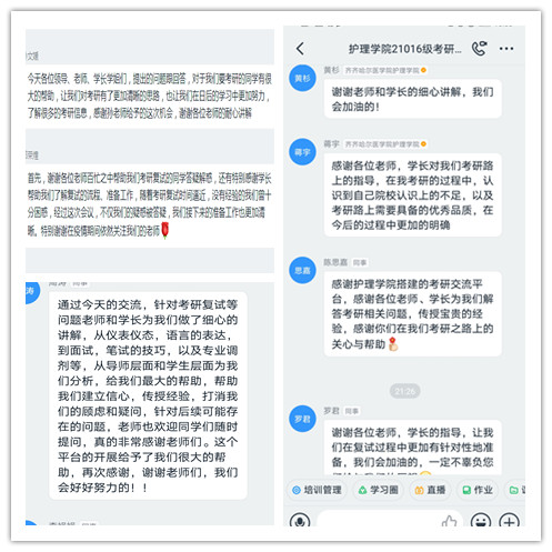 考研是学生追求学术目标、更好实现自我价值的体现,也是促进大学生高质量就业的重要途径。在教育部“专升本扩招 32.2 万、研究生扩招 18.9 万”等利好政策的背景下,综合考虑到目前的实际情况,护理学院于2020年4月5日晚为考研学子组织了一场精准的、个性化考研复试线上辅导。
