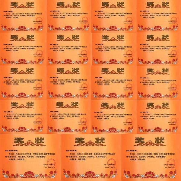 为加强公共卫生学院学风建设,发挥“零违纪班级”的引领示范作用,2020年4月24日,公共卫生学院利用“钉钉”平台召开了2019-2020学年第一学期“零违纪班级”表彰大会,党总支书记张长娟、副书记娄峰阁、全体辅导员和班主任参加了会议,会上为全院19个班级颁发了“零违纪班级”奖状。