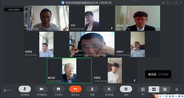 答辩委员会主席由牡丹江医学院博士生导师、龙江学者初彦辉教授担任,评审专家由新乡医学院硕士生导师杨世昌教授、齐齐哈尔医学院硕士生导师赵容杰教授、李平教授、李丽波教授担任,答辩委员会秘书由李成冲科长担任。参加此次答辩的是2017级硕士研究生王也夫同学,导师为崔光成教授。