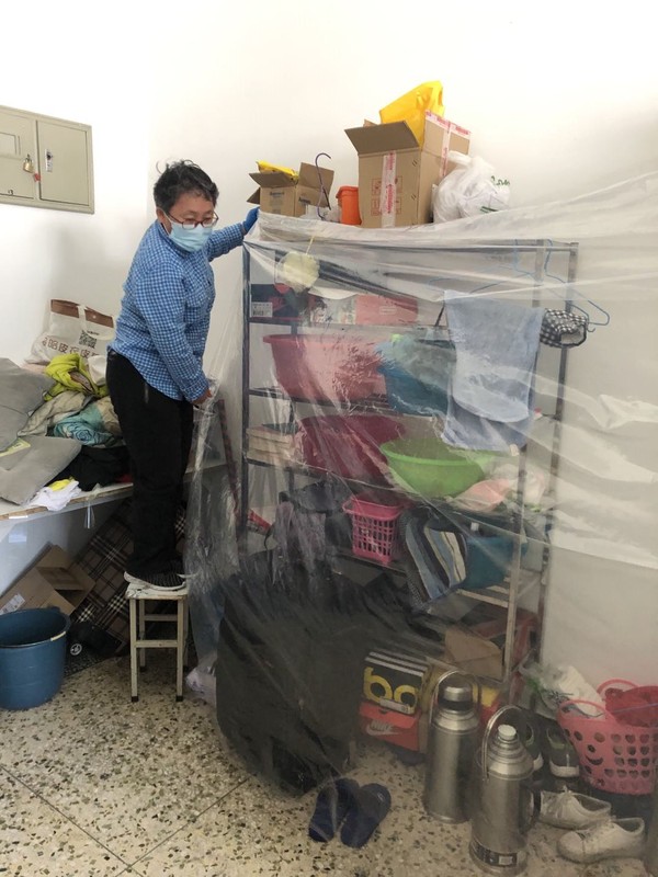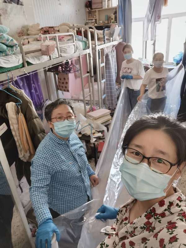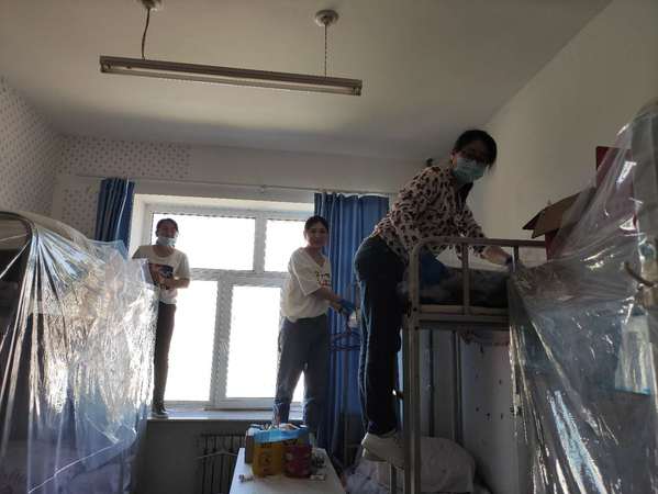 为做好返校学生寝室防控和卫生,6月11日,在护理学院党总支书记厉红的带领下,辅导员、班主任对毕业生宿舍进行清洁大扫除,并按照学校的要求对返校学生即将入住的寝室进行遮盖,做好防疫准备。党总支书记厉红带头拿起工具,大家说干就干,积极配合,不放过任何死角,将里里外外都打扫得干干净净,充分发挥了不怕脏、不怕累的奉献精神。并逐一对学生寝室通风换气,为学生返校复学做好准备。