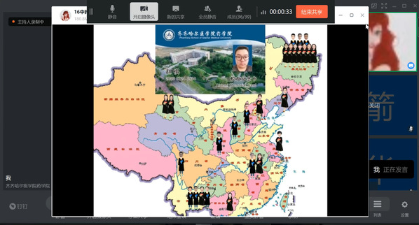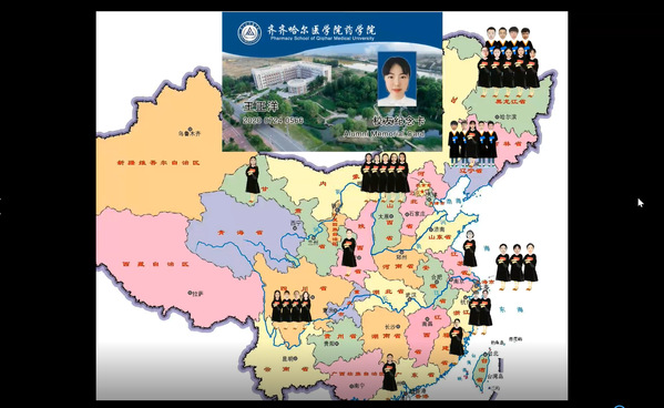 活动伊始播放了以“青春不散场,我在齐医等你”为主题的视频,视频中出现的科技楼、图书馆、春花城、秋实城、丁香园、梅园、体育场,带着毕业生回顾了大学期间生活、学习、活动的点点滴滴,勾起了学生青春美好的记忆。学弟学妹们从祖国各地发来的毕业祝福,也深深的感动了每一位毕业生。弓箭书记、李莉院长、韩翠艳副书记,崔红霞副院长分别向毕业生致词,声声话语中,处处体现学院对同学美好的祝愿和无限期待。接下来校友电子纪念卡正式颁发。伴着每一个毕业生校友电子纪念卡的徐徐播放,各专业负责教师用舒缓又带着情感的语言朗读每一个毕业生的名字和毕业赠言,毕业生的赠言充满了对大学生活的不舍、同学的情意和对母校的感恩。在读完每一个毕业生的留言后,弓箭书记、李莉院长、韩翠艳副书记,崔红霞副院长通过钉钉将电子纪念卡逐一发给学生,仪式即庄重又有满满的情意。最后,各专业课教师向同学们送去温馨的寄语,不少师生都留下了感动的泪水,现场令人动容,学生们纷纷发言表达对老师的感谢,对同学的祝福,对母校的难忘。伴着《不说再见》的背景音乐,以中国地图为背景,展示毕业生毕业后生活所在地,一张特殊时期,特别用心的云毕业照出现在学生面前,一张张学生纪念卡滚动播放,感染了现场的每一位师生,虽相隔万里,我们的心永远紧紧相连。
